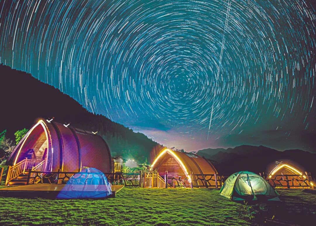 呈阳村靠山而建,房屋大部分布落在说念路两旁,空气通透时可明晰俯瞰,夜色灯光亮起更为显眼。星海茫茫,远山如黛,嵌入在群山之中的星空屋唠叨有致,繁星仿佛举手投足。呈阳村巧用自己天外透明度高和环境宁静的上风,将峻岭林海与民宿旅居竣工市欢,捏续不休植入新场景、推崇新创意,鼓舞文旅调处更新迭代,为影相东说念主提供了私有体验和拍摄机会。客岁4月,以“烟雨大黄山,星空小呈阳”为主题的2024年徽州文旅场景体验第一季在呈阳村开启,唠叨有致的星空屋、峻岭上的篝火晚会、夜幕下的民谣等深受搭客喜爱。