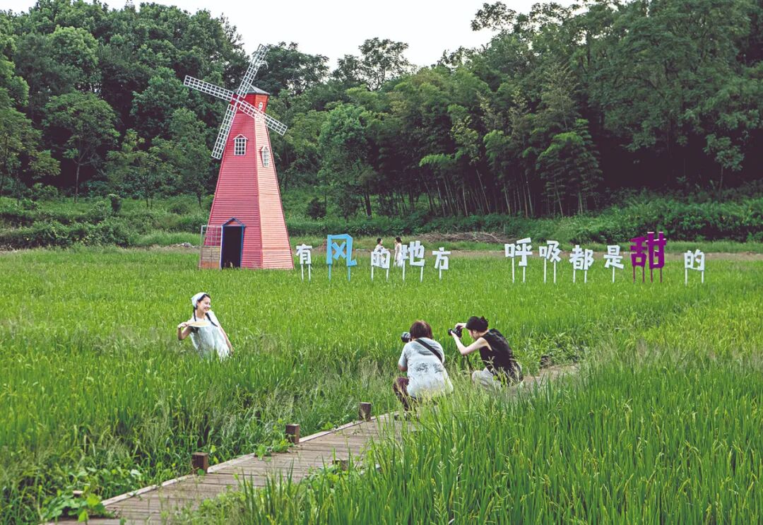 由南方路口进村,最初看到的是丞相状元坊。左边是一大片金黄的稻田,槐塘的两处网红打卡点——红色风车和蓝色相框在田中兀立,几个留心标大字“有风的方位,呼吸都是甜的”“田园好意思术馆”似乎在田间卓著。沿着村中干净整洁的骨干说念前行,一座座欧式风情的楼房映入眼帘,周围点缀着徽派格调的鱼池假山和盆景园林。说念路两旁,一幅幅颜色斑斓的墙画令东说念主目不暇接,比萨斜塔、瓦伦西亚科学艺术城、荷兰风车、伦敦卡姆登市集、意大利亚里托市集在墙面一一再现。村内的新建民房大多为土洋并举式野心,欧洲风情的多彩建筑与徽州韵味的粉墙黛瓦当然会通,开畅的稻田和考究的墙画情性横生,浓浓的咖啡与清香的茶叶交织碰撞,令东说念主感触不知此身在那处。