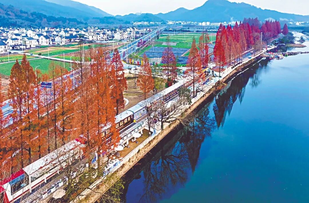 用无东说念主机眺望“向云霄”,横江清爽如碧玉,岸边两排水杉反照水中,碧波摇得树影婆娑。整皆胪列的水杉中间有一列特殊的列车,静静泊岸在月台边上。水杉树下鲜花蜂拥,各式祯祥物造型别致,好意思术馆、稻田咖啡馆、河畔音乐间、田园超市、分享茶屋、醒目青旅、滑板天下和儿童游乐场叮咛井然。园区野心如法泡制,方法颜色与当然环境调解相融,展现出中西文化与山水东说念主文的竣工市欢。